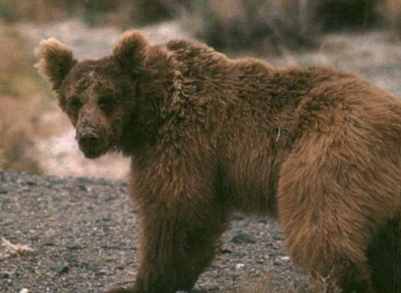 The Gobi Bear is shy and elusive. Brown bears usually have a robust frame with a powerful shoulder hump of muscle. The Gobi bear has longer limbs and a shorter golden coat than its cousins.