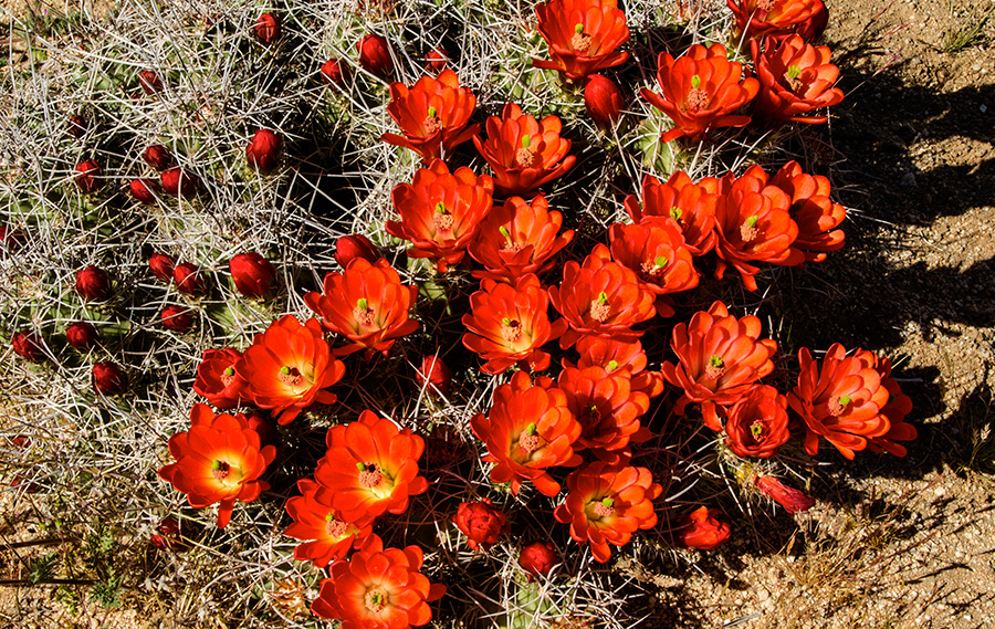 I was really lucky to be exploring the Park during a "Super Bloom." It was spectacular. A "super bloom" occurs after heavy rains fall in winter and early spring. When spring arrives the flowers burst forth in an explosion of color and variety. It is an amazing sight. Flowers were everywhere. The crimson claret cup and beaver tail cactus dotted the landscape with their eye-catching colors. Other flowers such as globemallow, evening primrose and the majestic Mojave yucca were in full bloom. The mature yucca can be three or four feet high with tall clusters of creamy colored flowers. The yucca, one of my favorite flowers, was in full bloom giving me many opportunities for that special photo. At first the urge to photograph everything in sight soon faded when I discovered that the Park was one giant photographic opportunity.