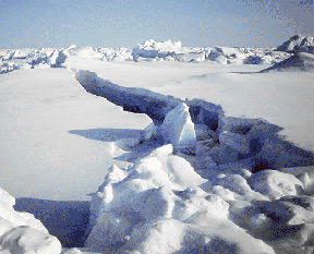 Crossing Frozen Lakes and Streams Ice conditions and travel safety change from year to year. Always check with local ranger stations for information regarding the current year's ice conditions. Before stepping onto any ice, use a ski pole or long branch to probe the ice for strength and thickness. Fresh water ice that is two inches or more in thickness should be safe, especially if you are wearing skis or snowshoes that distribute your weight. If possible travel single file and several yards apart. Animal tracks are a good indication of ice strength. Deer normally cross where the ice is stronger - follow their tracks. If possible follow a shady course where trees or high banks shelter the water from the sun. Avoid areas where streams enter the lake or river. Moving water prevents the ice from forming a thick, strong layer. Also avoid areas where the water course narrows. These are often areas where the water current moves faster and the ice is thinner. Always pay attention to what's ahead. Watch for surface water that can indicate a nearby hole or crack and any change in the color of the ice. Dark areas could indicate thinner ice or fresh, weak ice. Stay away from rocks protruding above the ice. The surrounding ice might be thinner due to radiated heat from the rock. Often the current is swifter around large rocks. If you do fall through the ice, drop your grip of a ski pole down close to the pointed end and use it as a grip to claw your way back up over the edge of the ice. Once on top, stay prone and slither across spreading your weight as much as possible until you reach thick, stronger ice.